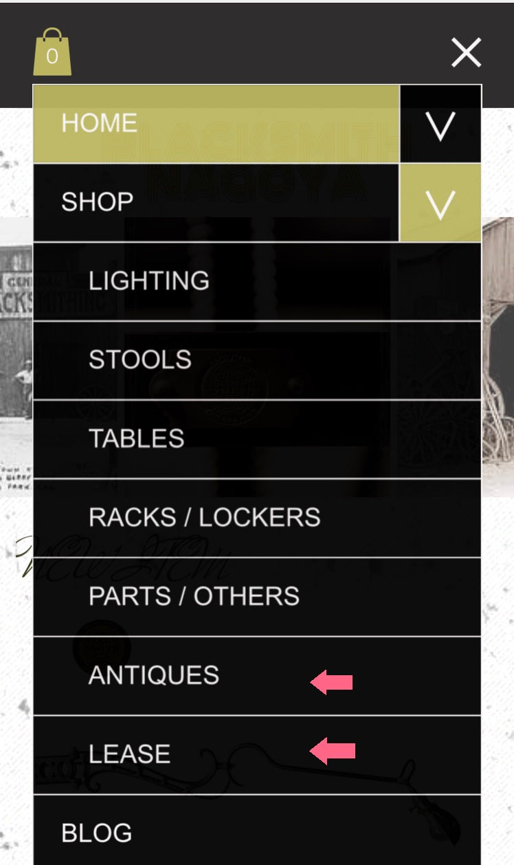 shopカテゴリーの中に新しく'' LEASE''と'' ANTIQUE''のカテゴリーを追加しました!